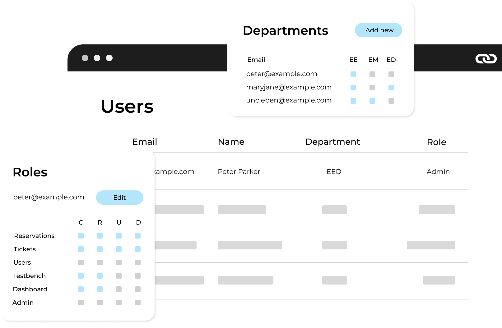 Advanced user management and easy permission control. Manage departments across the company with a focus on PoLP and security.
